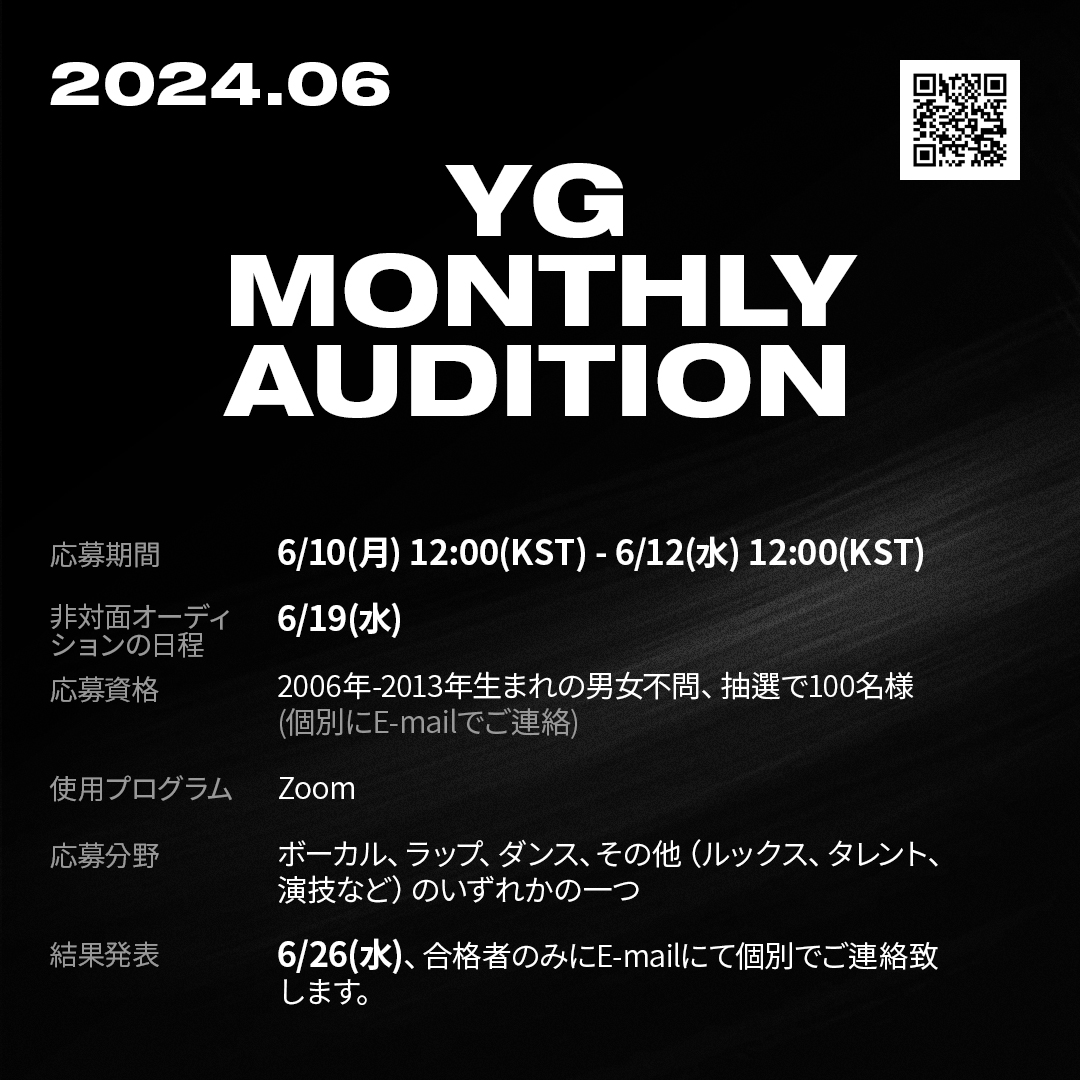 今すぐYG MONTHLY AUDITIONにご応募ください!